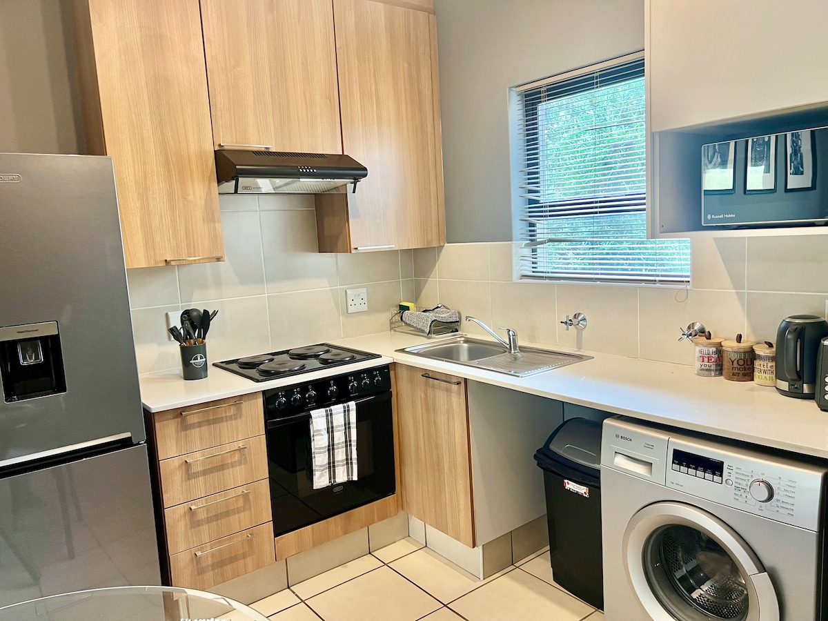 Olvídate de las preocupaciones en este gran alojamiento: ¡es un oasis de tranquilidad! Está ubicado en un tranquilo barrio residencial de Sandton, a un tiro de piedra del Monte Casino, el centro comercial Fourways y el aeropuerto de Lanseria. El apartamento cuenta con dos dormitorios con baño y una amplia zona común. Hay energía de respaldo para mantener el wifi conectado durante el apagón, y una hermosa casa club y área de ejercicios en la que puedes escapar temporalmente de la realidad. Ven a escapar del bullicio del centro de la ciudad en esta encantadora casa familiar, apta para cuatro personas.