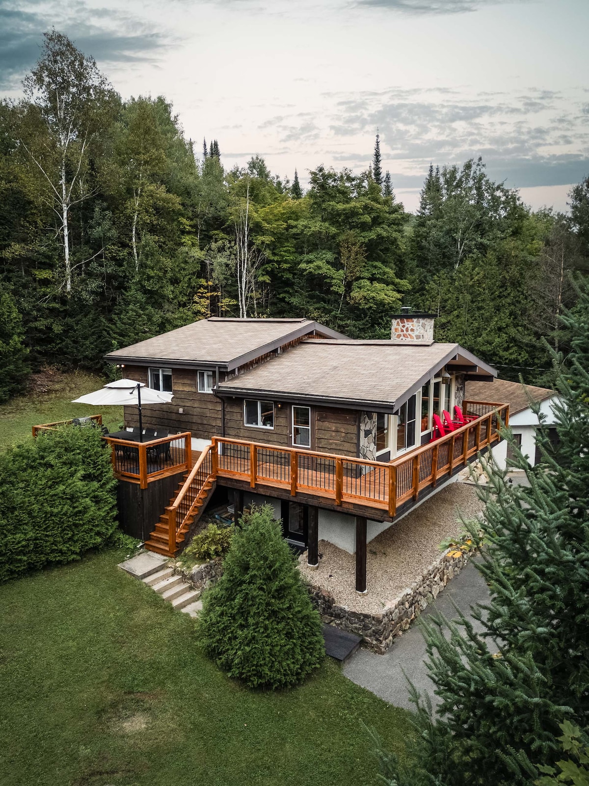 Détendez-vous et relaxez dans ce chalet paisible et élégant chalet, Le MÖkki , située dans la magnifique région des Laurentides! Situé à Mont-Blanc, sur le golf Royal Laurentien, ce chalet saura vous séduire par son design moderne et rustique à la fois. Une demeure spacieuse et vitrée laissant place à la contemplation de la nature et à la création d'inoubliables moments en famille ou entre amis. Vous serez à quelques pas de nombreuses activités de la région dont plusieurs sur le site même.