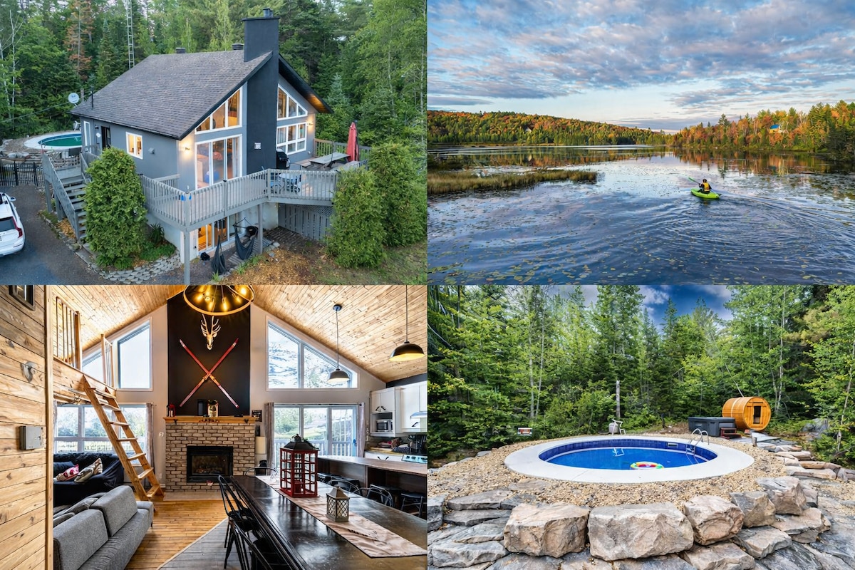 Villa de lujo frente al mar con 6 dormitorios espaciosos, 2 chimeneas de madera. La gran terraza exterior acompañada de sofás y mesa de terraza con UN SPA y el gran patio trasero lo convierten en el lugar perfecto para relajarse y disfrutar de la tranquilidad de un hogar en el bosque y una fantástica vista al lago Pontbriand. A 45 minutos de Laval, a 55 minutos de Montreal. Estamos ubicados en el corazón de Rawdon, en la región de Lanaudière.