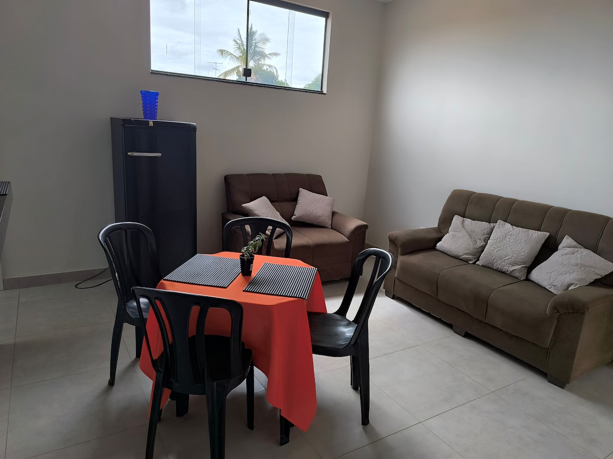¡Llegaste a tu destino! ¡Bienvenido! Compuesto por 1 dormitorio con cama doble. La habitación con sofá cama, TV y una decoración moderna. Cocina equipada con nevera, estufa, lavadora y utensilios para que puedas preparar tus comidas con facilidad. Baño funcional y limpio. En el centro de Moc, cerca de la estación de autobuses. Ideal para parejas, viajeros solitarios o grupos pequeños de hasta 4 personas que buscan comodidad, privacidad y practicidad. ¡Reserva ahora y vive una experiencia increíble!