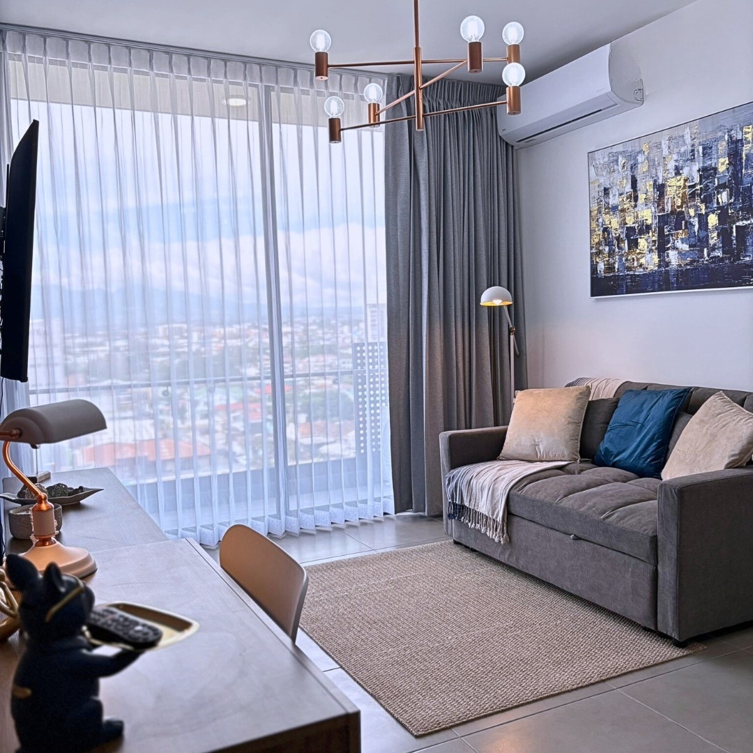 El apartamento se encuentra completamente equipado con todas las amenidades de entretenimiento, cocina y lavado para ser su segundo hogar en la ciudad. Es un lugar seguro, espacioso, elegante y muy céntrico perfecto para escapar del bullicioso y acelerado ritmo citadino y transportarse a la pacífica esencia tropical de Costa Rica. IMPORTANTE: Este es un condominio de ambiente FAMILIAR y TRANQUILO. MULTA DE $50 por ruido.