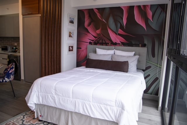El espacio es muy cómodo ya que está equipado con utensilios de cocina, mesa de trabajo, wifi, tv, aire acondicionado, sillón individual, sillón para dos personas, estantes, closets, etc que lo hacen muy acogedor. Además cuenta con un balcón con puertas corredizas que permite disfrutar de hermosas vistas hacia San José y montañas, atardeceres increíbles y aire fresco. La mayor parte de las calificaciones destacan la limpieza del espacio, algo que particularmente nos preocupamos en ofrecer.