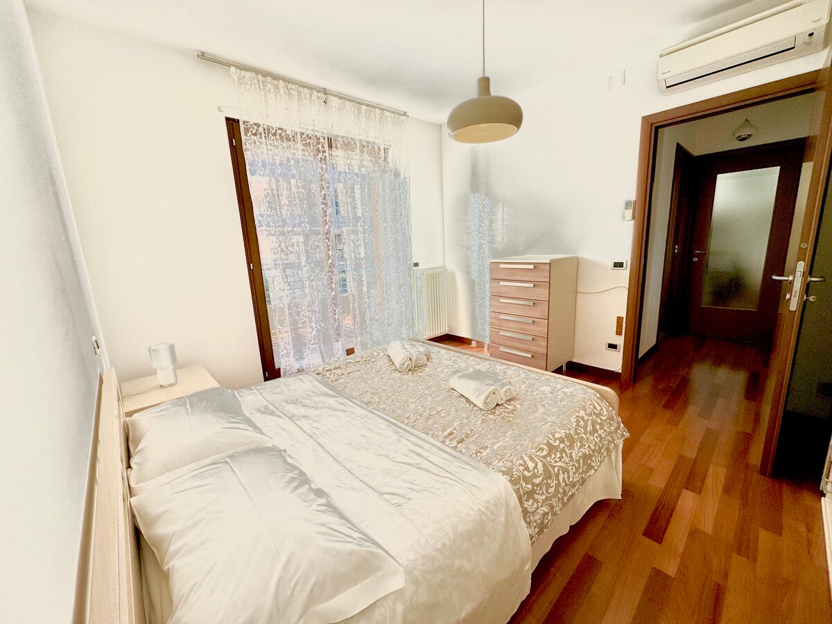 Precioso apartamento de dos habitaciones ideal para una pareja que viaja, o para quien trabaja, en el segundo piso con ascensor, que consta de cocina equipada con todo y con lavadora; dormitorio-sala de estar con cama doble, sofá de 3 plazas, TV, escritorio, ventilador de techo. A 100 m de la playa pública con chiringuito y ducha; a 700 m de la estación de tren y de la terminal de autobuses; a 300 m de la zona de locales; zona céntrica y peatonal (parque lineal "strada parco"), ampliamente comunicada por transporte público