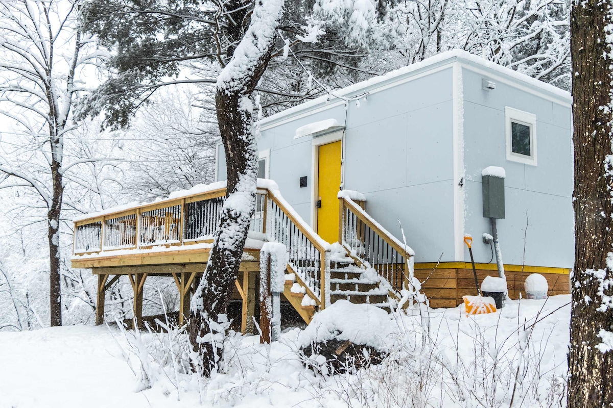 Our treehouse is a haven of well-being, peace, and elegance. In our stunning modern treehouse we have brought relaxation to a whole new level. Surrounded amongst us is nothing but woods & wildlife. An experience not to be missed. Put your favorite movie on the projector, get Zen in the cozy sun room, jam out to music on the record player, or grab a towel, and head for the custom cedar hot tub. It is time to create core memories that will never be forgotten. Welcome to a little slice of heaven.
