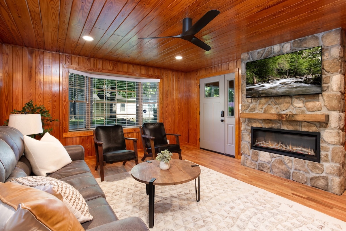 ¡Te damos la bienvenida a Roaring Fork Inn! Relájate en el porche trasero cubierto y deja que los sonidos del Roaring Fork laven tus preocupaciones. Da un paseo tranquilo hasta el centro de Gatlinburg, donde te esperan encantadoras boutiques, deliciosas opciones gastronómicas y animadas atracciones. Ya sea que estés buscando emociones al aire libre en el GSMNP o tardes tranquilas explorando tiendas y galerías locales, esta cabaña de 2 dormitorios y 2 baños sirve como tu base de operaciones ideal, ofreciendo la combinación perfecta de encanto rústico y comodidad moderna.