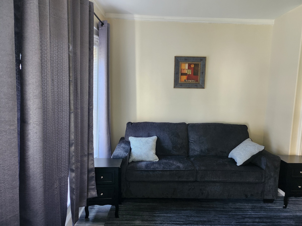 Disfruta de una experiencia elegante y acogedora en este apartamento céntrico, muy cerca de Front St, con numerosos restaurantes, bares, tiendas, un spa de día y museos. Además, a poca distancia en coche de todo lo relacionado con Saratoga Springs: el centro de la ciudad, el hipódromo, el recinto ferial del condado de Saratoga y el SPAC. Este apartamento está en la primera planta y cuenta con una entrada privada, totalmente renovado, aparcamiento fuera de la calle, cama tamaño queen, un televisor inteligente de 55 pulgadas en la sala de estar y el sofá se convierte en una cama adicional.