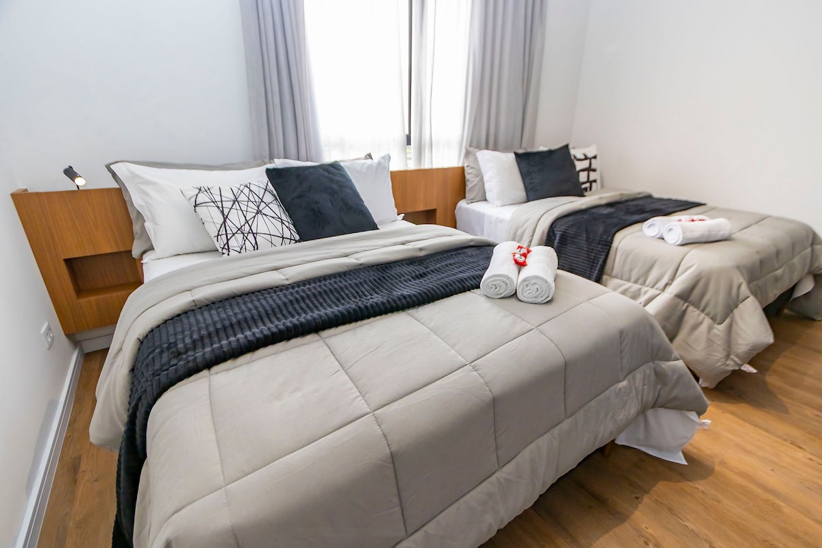 This modern apartment is located in one of the noble areas of Curitiba in the Bacacheri neighborhood, as well as being next to the food market Cadore and close to the National Supermarket, Banks, Egyptian Museum, Parks, Gym, among others. The apartment has a unique decoration with items that will make your stay even more special. The condominium has a mini market, covered garage, shared areas such as swimming pool, gym, gourmet area, pet space, etc. Come and check!