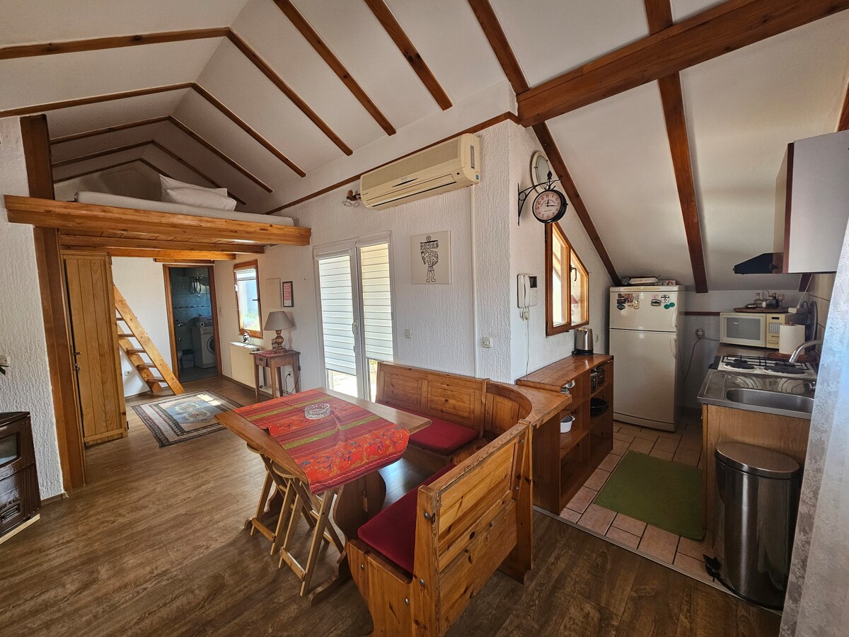 Lovely place for peaceful vacation located between Mostar and Blagaj. On 1st floor there is a kitchen, living room and comfortable bathroom with sofa for 2 person.Second floor is an open space bedroom with 2 beds. The most beautiful part is a terrace with 40 m2 ,there is a place for rest, a place for barbecue and an outdoor kitchen place. A private swimming pool with a pump for heating water is available to our guests from 01.05.-01.11.