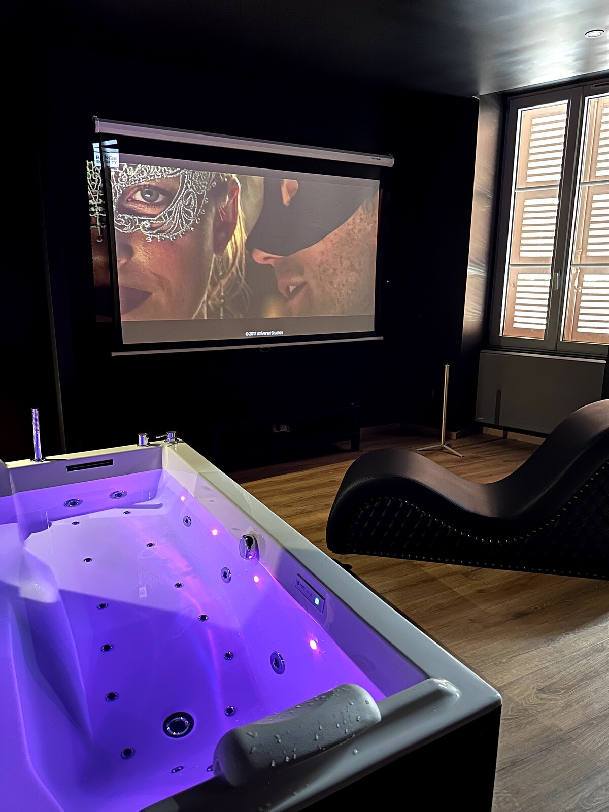 La suite Cincuenta Sombras Ponotes te sumerge en un universo sensual, travieso, apasionado y te promete una experiencia única. Disfrute de una noche romántica con bañera de hidromasaje, una cama tamaño queen, espejos en el techo y accesorios emocionantes que sorprenderán a su pareja y le traerán nuevas emociones y sensaciones fuertes. «La única manera de deshacerse de una tentación es ceder a ella». * Desayuno incluido en su reserva (excepto los lunes por la mañana).