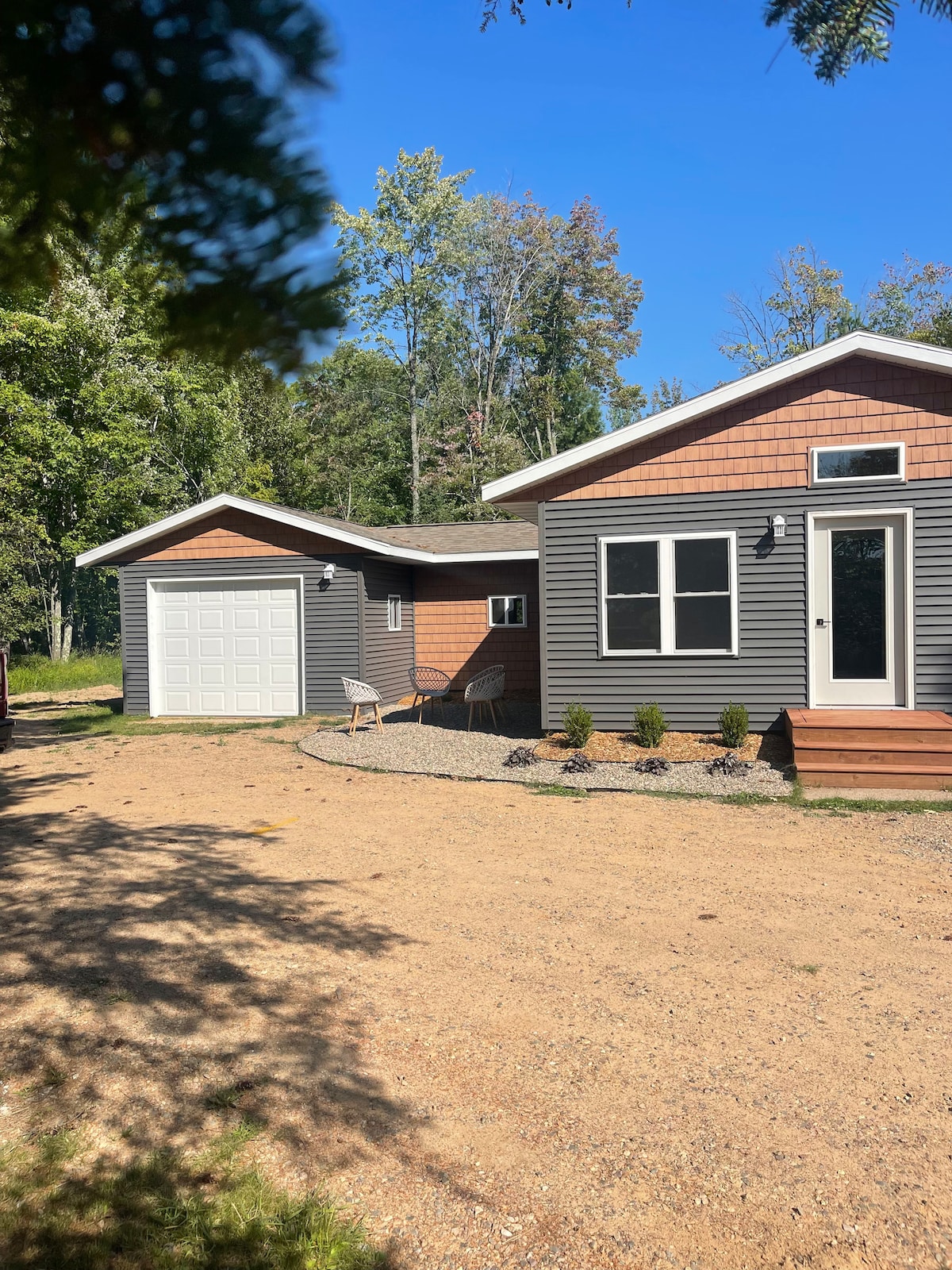 Resting on Star Lake and tucked into the north woods, this tiny home offers the tranquility you need to completely decompress. The Sasquatch Shores cabin is right on Star Lake, a quiet no wake lake that gives you the peace and quiet you want. Watch the sunset off of the dock or cast a line into the water! The cabin is also situated right on the ATV trail. The main offers a King sized bed and the guest room offers a Queen/Twin Loft bed. There is also sectional couch as a sleeping option!