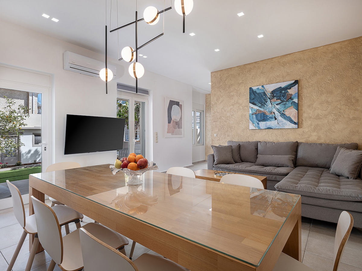 La casa de Thelma y Louise es un hermoso apartamento moderno de dos dormitorios, perfecto para aquellos que anhelan una escapada tranquila, lejos del ruido de la ciudad y, al mismo tiempo, tan cerca del centro. Se encuentra en La Canea, en la zona suburbana de Mournies. Se encuentra a 3,6 km del centro de la ciudad y a 4,3 km del antiguo puerto veneciano. Es un nuevo apartamento en la planta baja de 98 metros cuadrados, con plaza de aparcamiento privado, construido por Danae y su familia en 2022 con mucho amor y pasión.
