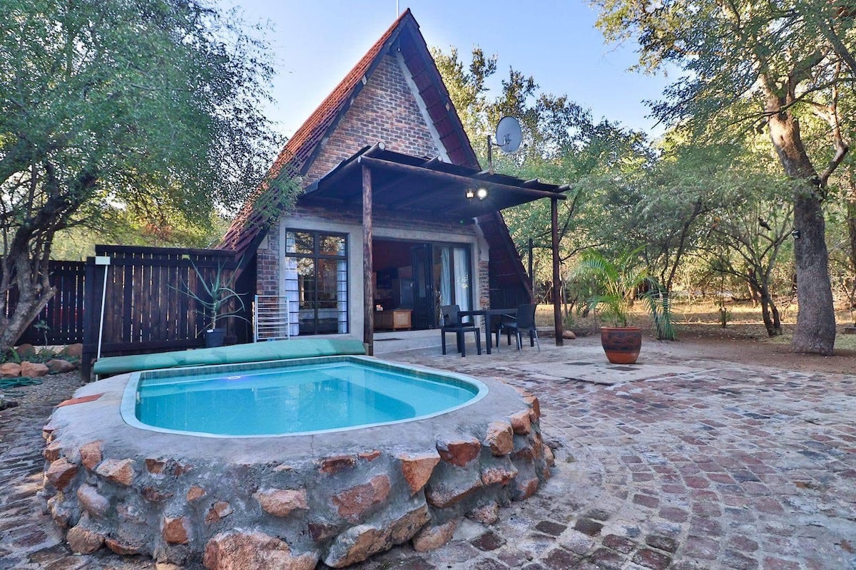 Ven y disfruta de un tiempo lejos en este tranquilo y aislado chalet de piedra de 2 dormitorios con techo de paja interior y jardín privado. El apartamento consta de: - 2 dormitorios: un salón y comedor con wifi gratuito, Netflix y Openview. - una zona de zona totalmente equipada. - baño privado con ducha. Los visitantes también pueden disfrutar de la zona exterior que tiene hermosas vistas a la pequeña colina y una encantadora zona de braai/barbacoa. POR FAVOR, TEN EN CUENTA que la unidad no tiene generador de respaldo para el desprendimiento de carga.