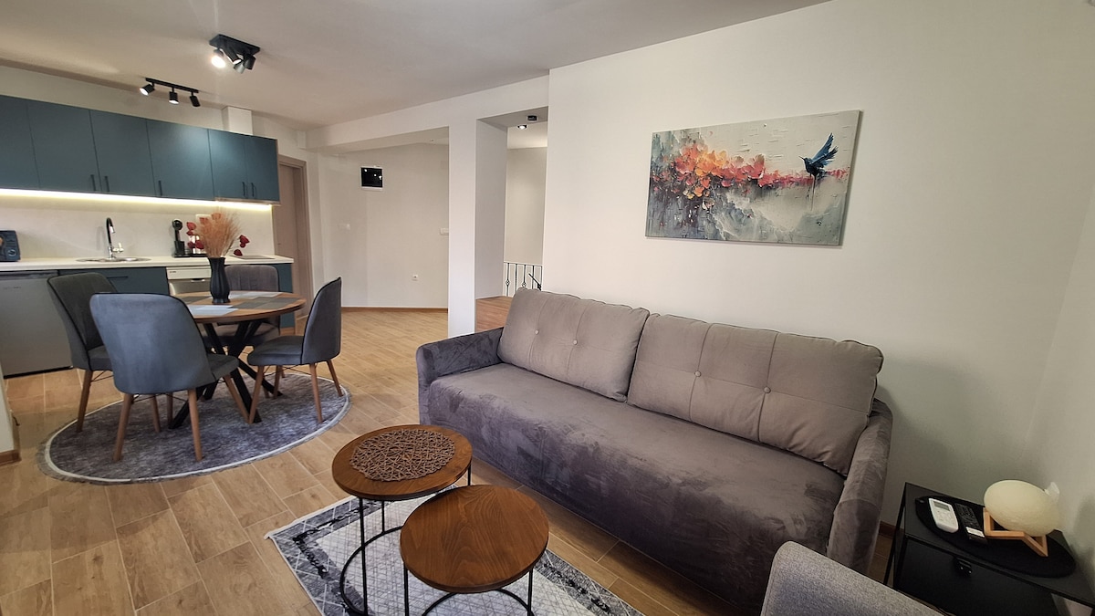 Moderno y elegante apartamento de 1 dormitorio situado junto al río Dragor, a solo 5 minutos a pie de la plaza principal Magnolija o a 10 minutos en coche del Parque Nacional Pelister. Ubicado en la primera planta. Tiene un dormitorio con cama tamaño king, baño totalmente equipado con lavadora. Hay un sofá cama en el salón con capacidad para dos adultos y un niño. El apartamento tiene calefacción y aire acondicionado y viene con TV LCD, internet wifi y alarma de seguridad. ¡Se admiten mascotas pequeñas!