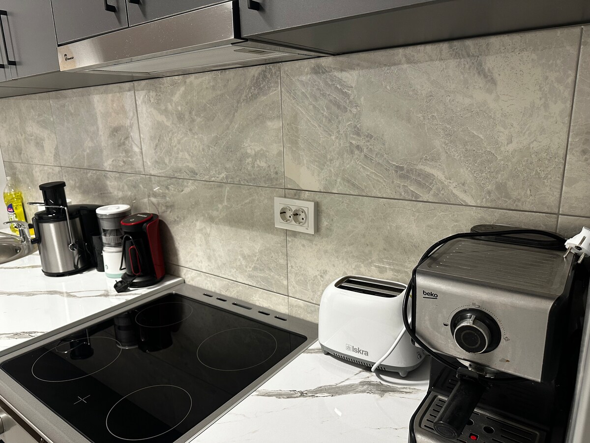 ¡Bienvenido al apartamento Venus Deluxe en el corazón de Strumica! Este moderno departamento de 2 dormitorios cuenta con camas tamaño queen, una cocina totalmente equipada, una acogedora sala de estar y comedor, y un balcón. Disfruta de conexión Wi-Fi, TV por cable y estacionamiento gratuitos. A pocos pasos de tiendas, restaurantes y atracciones, es perfecto para familias, amigos o viajeros de negocios que buscan comodidad y conveniencia.