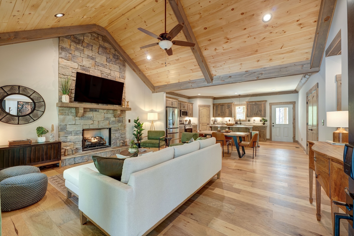Escápate a esta impresionante cabaña alpina ubicada en el corazón de Ellijay, Georgia. Este refugio contemporáneo cuenta con un acogedor diseño abierto con una acogedora estufa de leña. El elegante interior cuenta con una cocina totalmente equipada, cómodas zonas de estar y una escalera de caracol que conduce a un loft abierto. Relájate al aire libre en la bañera de hidromasaje bajo las estrellas o reúnete alrededor de la chimenea al aire libre. Una gran terraza ofrece un amplio espacio para descansar, cenar o simplemente disfrutar de los sonidos tranquilos del arroyo cercano.