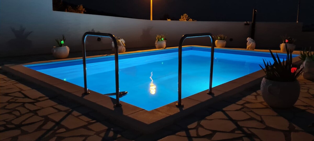 Overlooking the wonderful coastline and the beautiful village of Primosten, this four-star classified bungalow ist situated high up on the hills of Primosten in a calm corner. It features a sun-filled living room and two separate bedrooms. These three rooms have a separate air conditioning system. One small bathroom with shower. Living space is about 70m². All windows offer an built-in mosquito net to protect you. Maximum occupancy is 4 guests. A perfect place for families with kids. We also welcome especially dog owners. The house and the grounds are completely enclosed, so the house has privacy. However, please note that dogs are not permitted in the pool. Furthermore, we do not accept groups of young men only due to negative experiences in the past. The bungalow isn't a party location. Fully and modern equipped kitchen with all amenities and utensils you may need. A washing machine is at your disposal as well. Enjoy the private sea-view terrace with spectacular views of the Croatian Ocean. The large courtyard is a perfect childrens playground. Our newly built (2022) swimming pool invites you to swim, wade, float on tubes. Or just cool off on hot days and lie smooth and serene. Length 6m, width 3,5m, depth 1,5m. The pool is exclusive for you, no sharing with other people. Private and shaded parking space is available for 2 cars on the grounds in our new carport (2024). Barbecue area to prepare the Mediterranean delicacies is waiting for you. The beaches in Primosten and Rogoznica can be reached in 10-15 minutes by car. Walking distance down the hill about 3,5 km.
