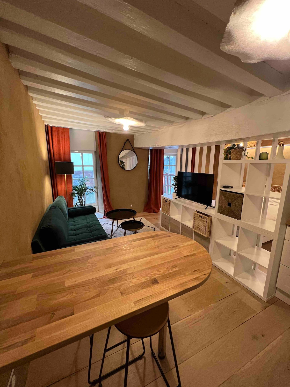 Encantador apartamento de 34 m2 en pleno centro histórico de Rennes. El Saint Georges se encuentra en una calle peatonal en el lado del patio, lo que le permite disfrutar de la tranquilidad y la proximidad a los restaurantes. El apartamento es luminoso y cálido con su chimenea, suelos de madera y vigas. El Saint Georges tiene una gran sala de estar llena de luz, una zona de dormitorio, una cocina y un baño.