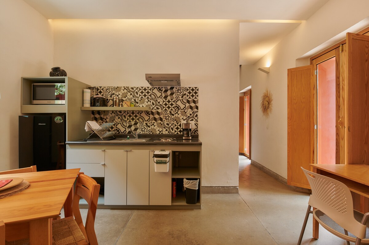 Diseñada por Ricardo Terán Pluma, Rubina, una joya en el corazón de Oaxaca con un estilo oaxaqueño-rústico que te brinda una experiencia local con un alto estándar en diseño, comodidad, funcional y servicios. \nSu ubicación estratégica te permite disfrutar, caminando, de los sitios emblemáticos del Centro: históricos, culturales, restaurantes, bares, mercados públicos y salones de fiestas. Cuenta con una terraza, con el equipamiento para descansar o para trabajar y para ¡Ser tu hogar en Oaxaca!