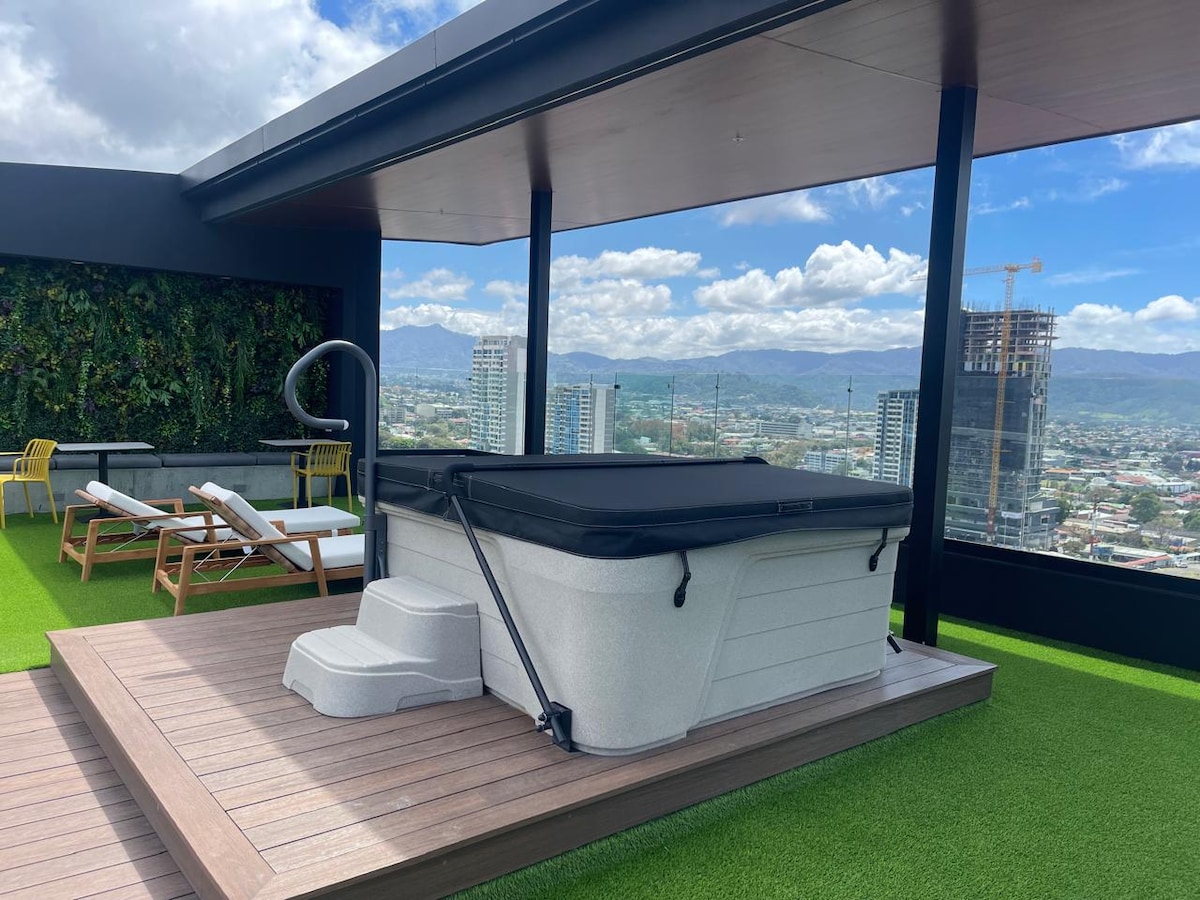 A/C, WiFi 500 mbps, y parqueo gratuito incluido! Te damos la bienvenida a tu nuevo apartamento en el centro de la ciudad, ubicado en uno de los edificios residenciales más icónicos del país, con variedad de amenidades y a tan solo 5 minutos caminando de la zona gastronómica más famosa de San José. El barrio es seguro, y cuenta con diferentes zonas de ambiente según tu preferencia, a minutos de los sitios culturales más emblemáticos de la capital.