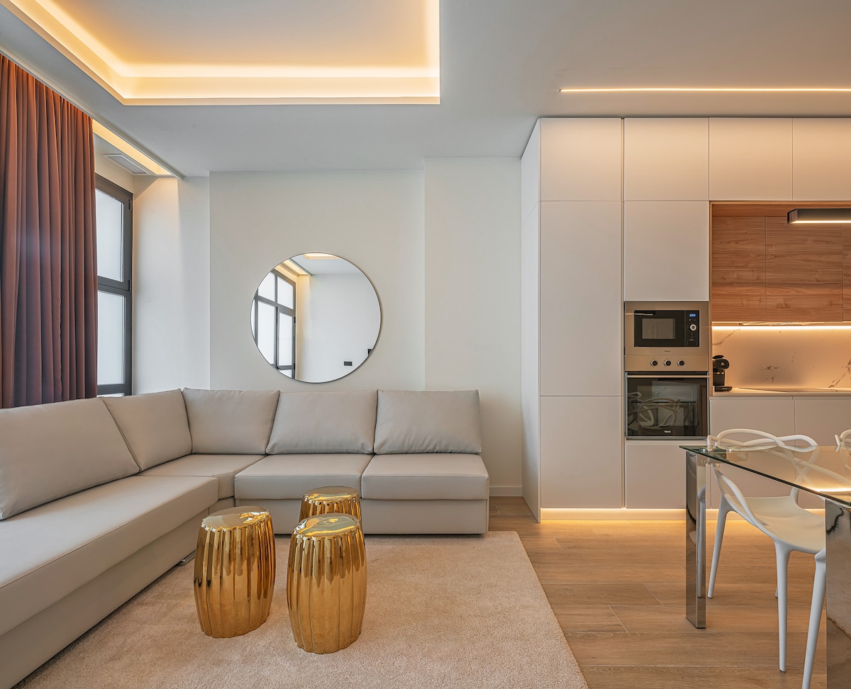 This brand new apartment is meant for design lovers. We took care during the renovation of every detail and created a space where no one will ever want to leave. The apartment is carefully decorated and has light coming from every corner. Open Kitchen fully integrated with the living room and three balconies make up the main space. 2 bedrooms each one his own bathroom the second half of the house. During the night the lights will captivate you. IMPORTANT: No elevator