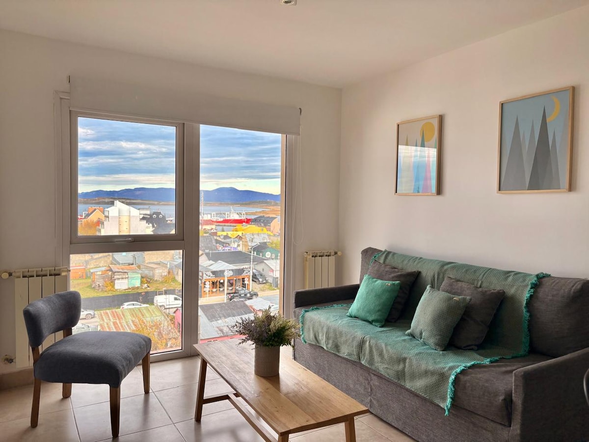 Welcome Guests! Central location Balcony overlooking the port of Ushuaia, Beagle Channel and Mountains. Two bathrooms. Fully equipped for 6 people. (Up to 2 extra guests) Safe in the master room. Self-Service Breakfast. Bienvenidos Huéspedes! Ubicación céntrica. Balcón con vista al puerto de Ushuaia, Canal de Beagle y Montañas. Dos baños. Equipado completamente para 6 personas. (Hasta 2 huéspedes extra) Caja de seguridad en habitación principal. Desayuno autoservicio.