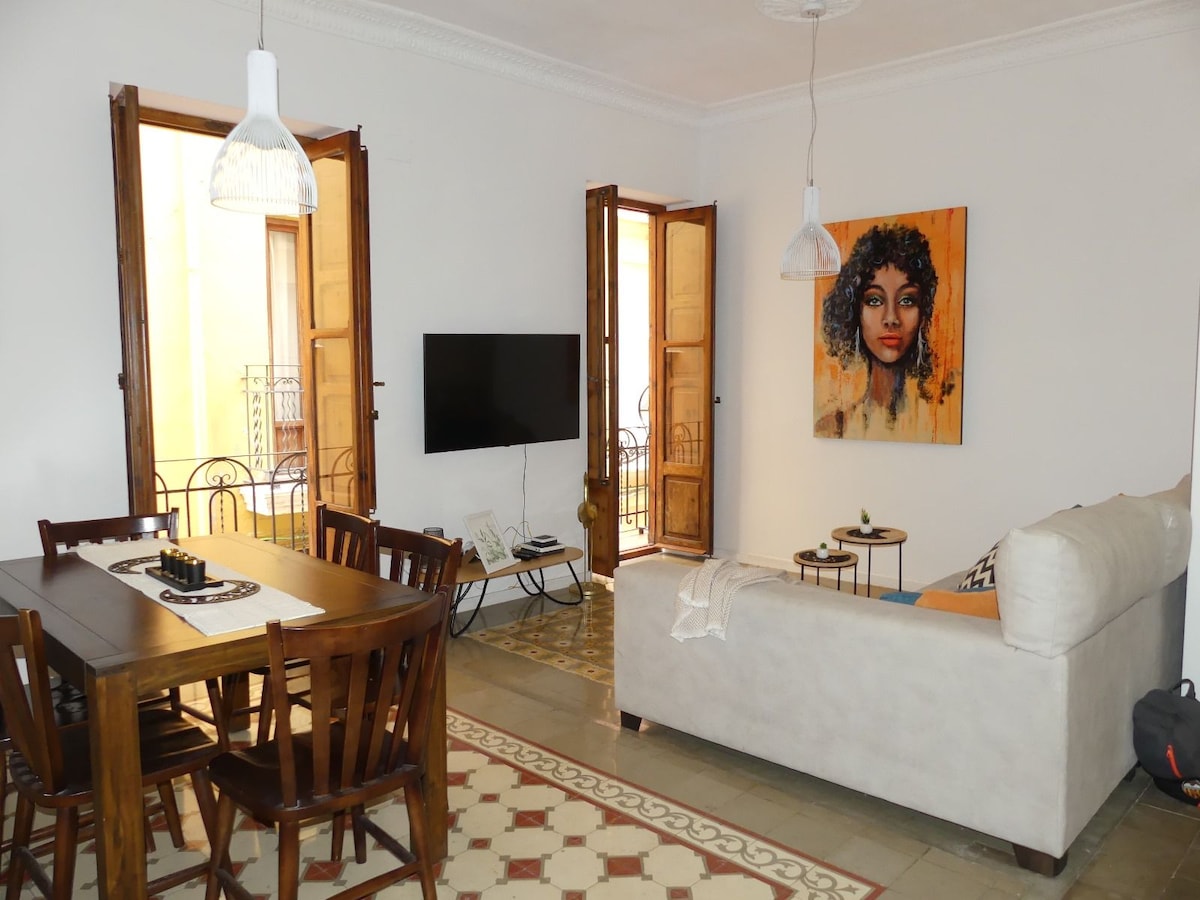 Apartamento acogedor, luminoso y tranquilo en edificio rehabilitado de Ciutat Vella Situado en calle peatonal con encanto, inundada por tiendas tradicionales de cestería y madera Junto al Mercado Central, Lonja, Plz Redonda, Ayuntamiento y Catedral Si el apartamento está reservado, echa un vistazo a mi otro apartamento en la zona "BRIGHT, OLD TOWN, CENTRAL MARKET" a través de mi perfil.