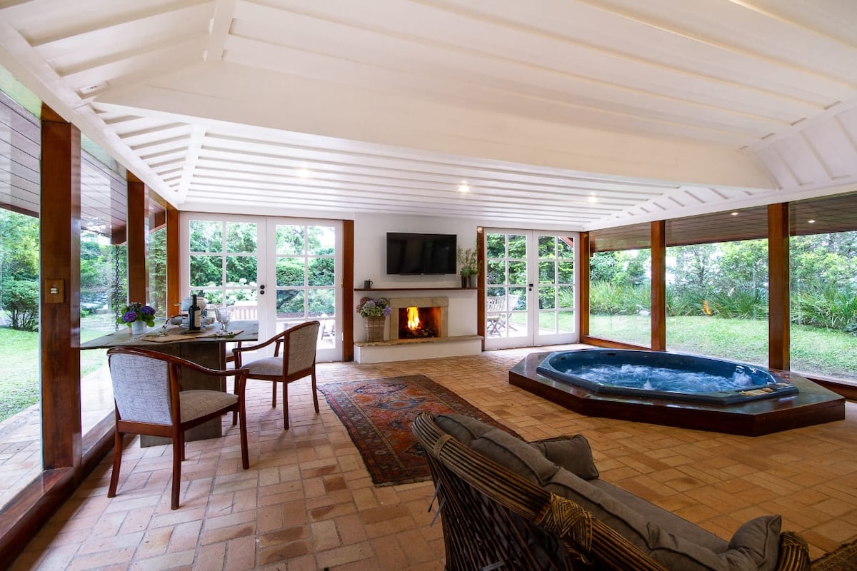 Para aquellos que buscan una escapada tranquila con comodidad,Villa Cambraia es un rincón especial en la cordillera de Mantiqueira. El jacuzzi en el balcón acristalado y la piscina climatizada, un toque de lujo que permite momentos de inquietud , relajación y disfrute de la vista de la naturaleza . La cocina está completa, cafetera Nespresso,microondas,minibar, electrodoméstico de fondue,tostadora y chimenea. Estamos ubicados en el barrio de Lajeado, a 12 minutos del centro de Santo Antonio do Pinhal y a 25 minutos de Campos do Jordão.