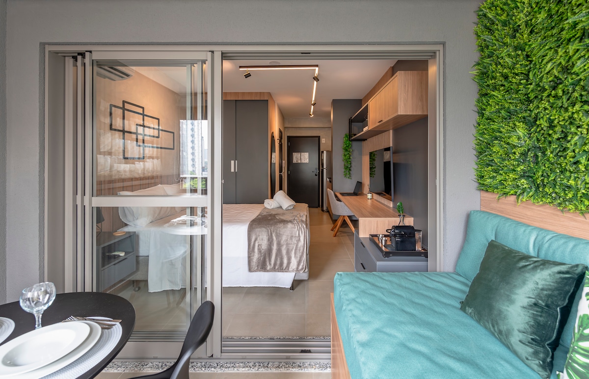 Pensado para transformar sua experiência de estadia em algo especial. Apto com quarto no mezanino, sala com pé direito duplo e vista espetacular, cama e chuveiro perfeitos, equipado com Alexa e iluminação automatizada. O Edifício recém construído, possui espaço Coworking amplo, Academia completa e Piscina no Rooftop ambas com vista para o Parque do Ibirapuera. Lavanderia administrada pela empresa Dry Clean, Quadra de Squash, Sauna Seca e bicicletário também estão disponíveis para os hóspedes.