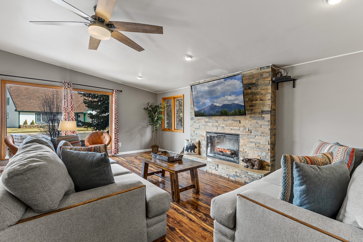 Entra en la comodidad de esta elegante casa de 3 dormitorios y 2 baños con excelentes instalaciones en Flagstaff, Arizona. Situado en el encantador barrio familiar, promete un refugio sereno a solo unos minutos del centro de la ciudad, numerosas atracciones y lugares emblemáticos. El diseño contemporáneo y una rica lista de servicios satisfarán todas tus necesidades: ✔ 3 cómodos BR Área de estar✔ abierta del plano de piso ✔ Cocina totalmente equipada ✔ Chimenea interior ✔ Patio trasero (fogata, barbacoa) Wifi ✔ de alta velocidad ✔ Estacionamiento gratuito ¡Ver más a continuación!