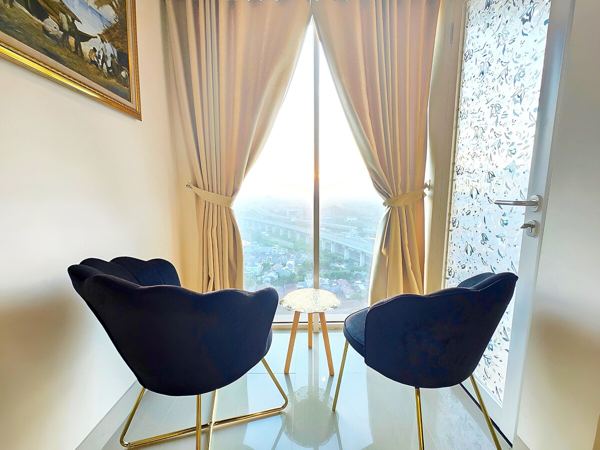 Wifi de alta velocidad. Netflix. ¡Descuento por estancias largas! 🚭 La única suite única en esquina de 2 BR con diseño industrial chic. Ya sea que te quedes por negocios o por fin de semana, garantizaremos tu estancia cómoda. Esta unidad de autoservicio PARA NO FUMADORES ubicada en 32nd fl, con increíble vista al paisaje de Bekasi, carretera elevada MBZ y tren de alta velocidad LRT +. Cuenta con electricidad de 2200 vatios, aire acondicionado, nevera y utensilios de cocina completos para 4 personas. Lagoon Mall se encuentra justo debajo del apartamento. El estacionamiento NO es gratuito.