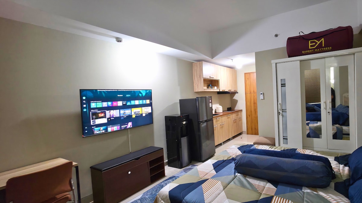 Alójese cómodamente en un cálido estudio con bonitas vistas a la ciudad y a la laguna. Completado con un juego de cocina, una cama tamaño queen y un espacio de trabajo con acceso wifi ilimitado, tu estancia se sentirá como en casa. Disfruta de diversas instalaciones: piscina, área de juegos para niños, gimnasio, centro comercial, cine y varios restaurantes. Por razones de salud y seguridad para todos los huéspedes, este apartamento se limpia con antiséptico y desinfectante antes del check-in.
