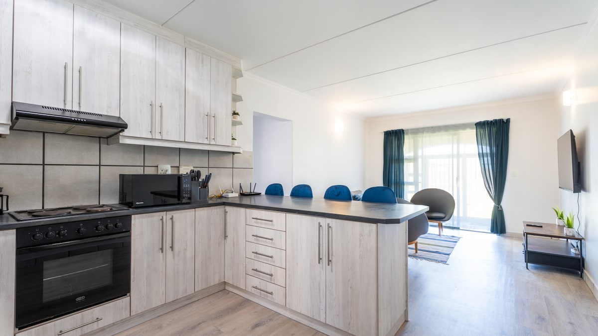 Cálido apartamento estudio de planta abierta para el viajero solitario o la pareja aventurera. Internet mejorado con UPS para reducir la carga. Este complejo de apartamentos está situado en la principal playa de kitesurf de Langebaan, con una zona compartida de braai/barbacoa en primera línea de playa. Para los kitesurfistas, hay una zona abierta con césped para inflar y lavar el equipo, así como una ducha al aire libre. El apartamento tiene una cocina completa si quieres ser Gordon Ramsy, y también está a poca distancia a pie de todos los restaurantes/supermercados si quieres darte un capricho.