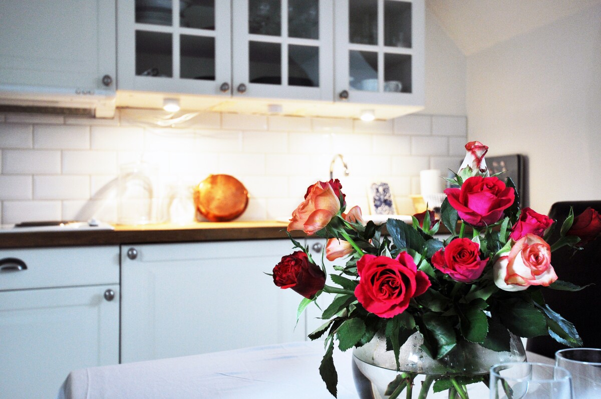 Charming house (separate house with own entrance) with ocean view in the beatiful area, Saltsjö-Duvnäs, only 20 minutes from the Stockholm City centre with the local bus. The guesthouse has a romantic setting and decorated in country style. One bedroom with double bed and kitchen with an extra bed. Dinnertable with room for 4 persons. Downstairs is a bathroom. Suitable for a small family with 1-2 kids. We have 2 kayaks to lend for free and it is possible to rent a small motor boat.