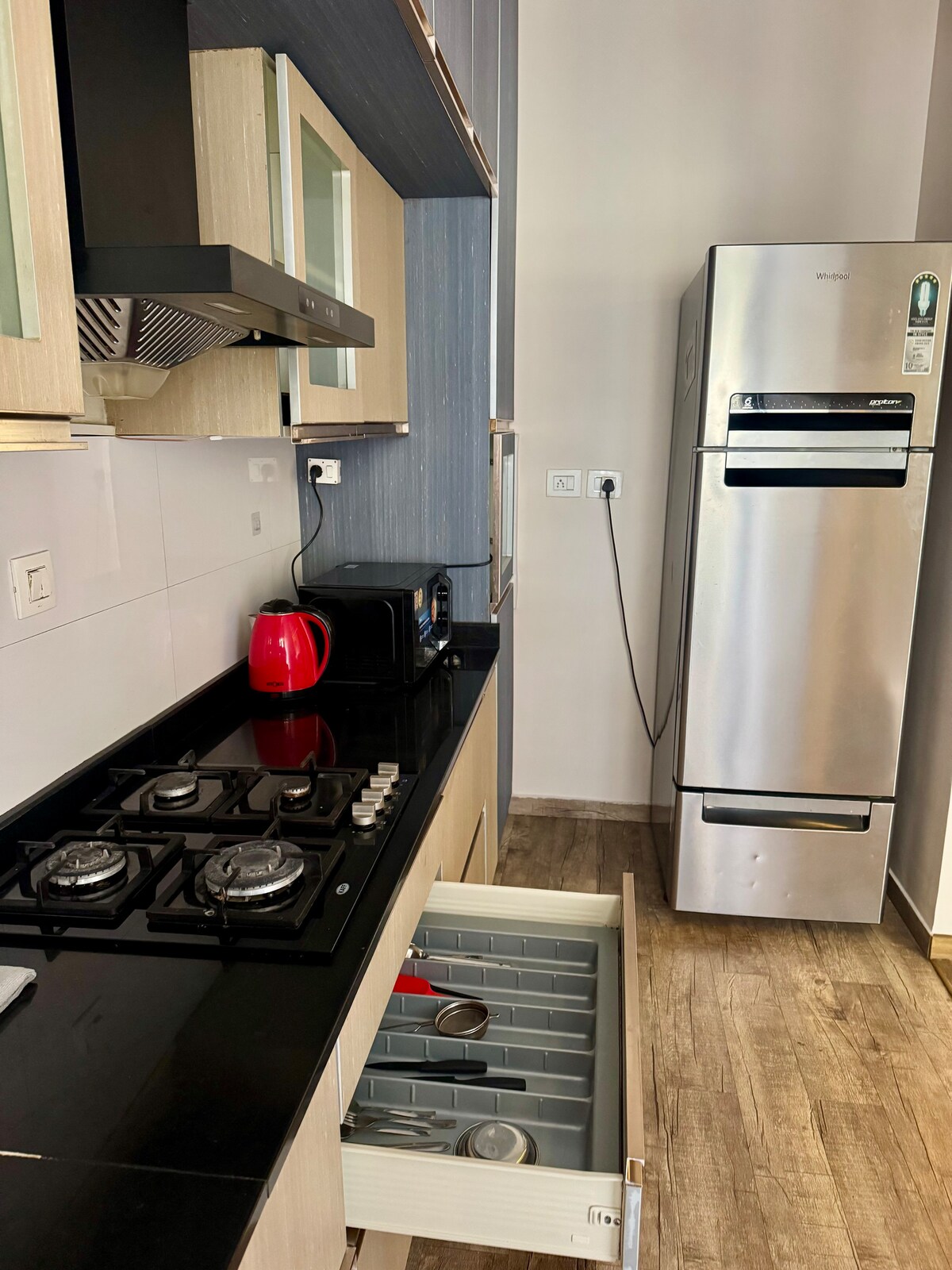 Quédate en el piso 24 y despiértate con una hermosa vista de la ciudad. El departamento es acogedor, limpio y cuidadosamente configurado, perfecto tanto para el trabajo como para la relajación. Se ubica en una de las comunidades cerradas más queridas de Bhartiya City, conocida por su ambiente tranquilo, vegetación y amplios senderos para caminar. El centro comercial Bhartiya City Mall está justo afuera para cafés, tiendas y comestibles. Muy cerca de Manyata Tech Park y a solo 30 minutos del aeropuerto, es la combinación ideal de comodidad, conveniencia y tranquilidad.