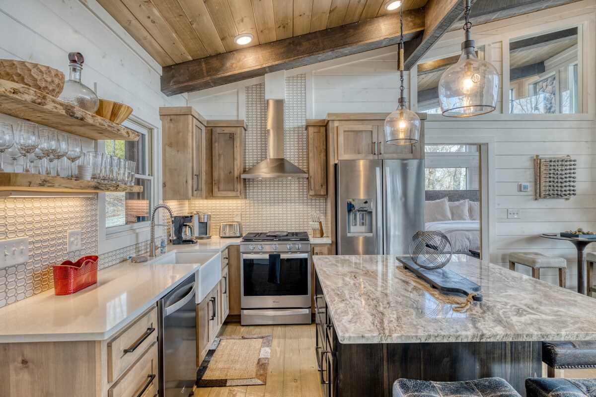 Minicasa renovada en un vagón de tren cerca de las montañas Great Smoky