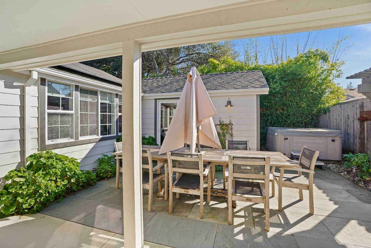 Disfruta de una estancia elegante en la región vinícola en este refugio de 3 dormitorios situado en el centro, a solo 5 minutos de Sonoma Plaza. Ubicado en el deseable lado este de la ciudad y rodeado de bodegas de clase mundial, incluida Gundlach Bundschu (la bodega familiar más antigua de California) al final de nuestra tranquila calle. Salga a su oasis bucólico privado con terraza envolvente, arroyo estacional y jacuzzi, donde podrá relajarse bebiendo vino local mientras cena al aire libre bajo olivos y cítricos.
