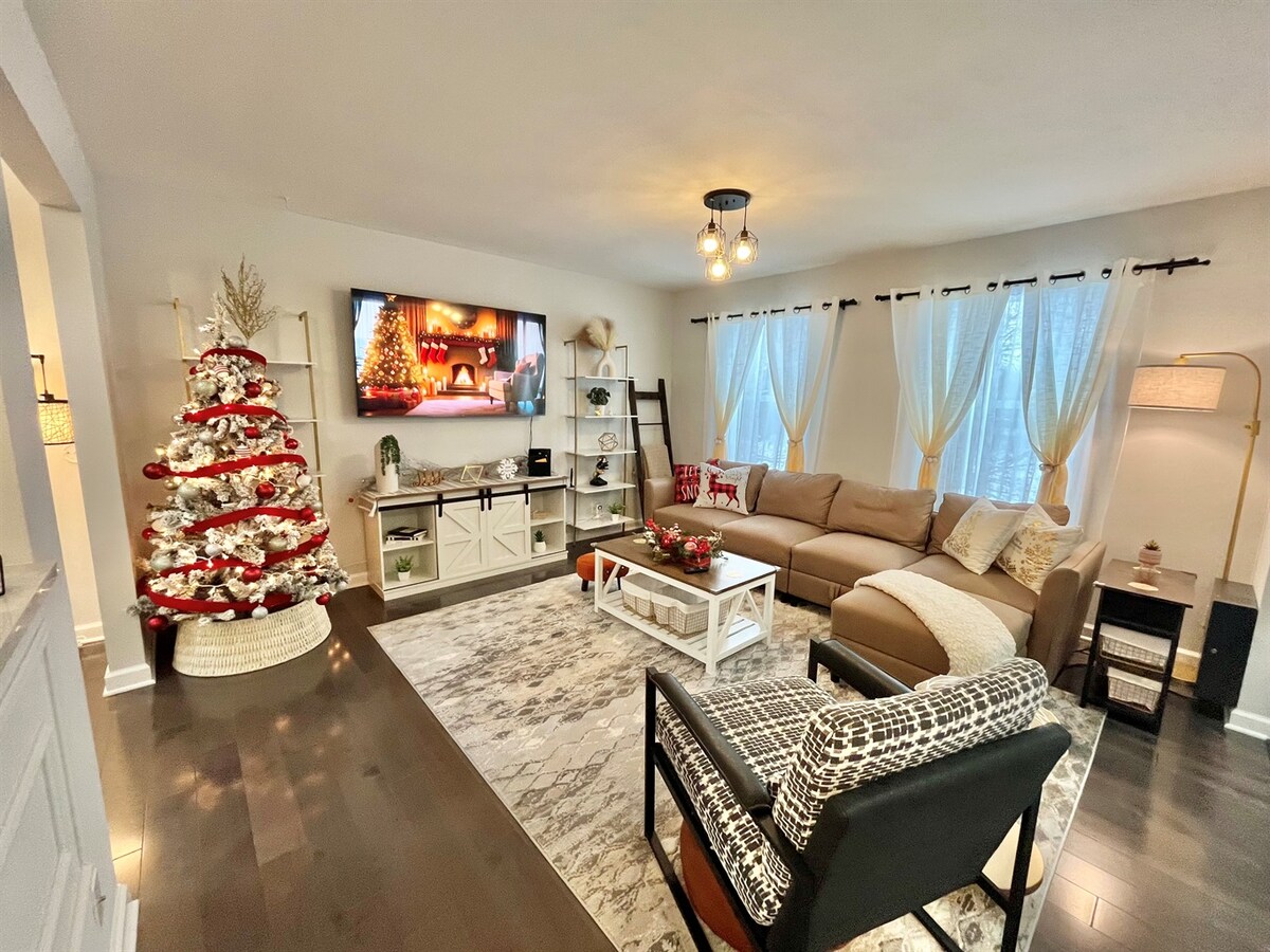 Relájate y disfruta de esta casa suburbana abierta y bien iluminada, diseñada y amueblada para ser un hogar totalmente equipado lejos de casa. Antes de cada reserva, este alojamiento se limpia a fondo y se le da un tratamiento de ozono y UV para desinfectarlo. Esta casa incluye servicios como la chimenea y la parrilla en el porche trasero, el garaje para 2 coches y un sótano acabado con mesa de ping pong y PlayStation. Los favoritos particulares también incluyen la cocina totalmente equipada y el gran dormitorio principal con baño privado.