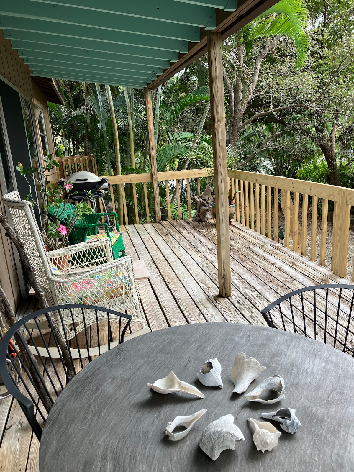 Esta casa soleada (1.200 pies cuadrados) en un encantador barrio tiene 1 amplio dormitorio con una gran cama tamaño king. El sofá cama muy cómodo en LR ofrece espacio para una tercera persona o un niño (8 años o más). Mesa de comedor para 4 personas en el exterior en una enorme terraza en un entorno exuberante con brisas frescas de la bahía de Naples. También hay una mesa de comedor en el interior. Cocina bien surtida. Pequeña biblioteca con libros de arte y más. Wifi RÁPIDO. Roku TV. Estacionamiento cubierto debajo. A 1 milla del centro de Naples, a 2 millas de la playa. ¡Mucho mejor que cualquier hotel!