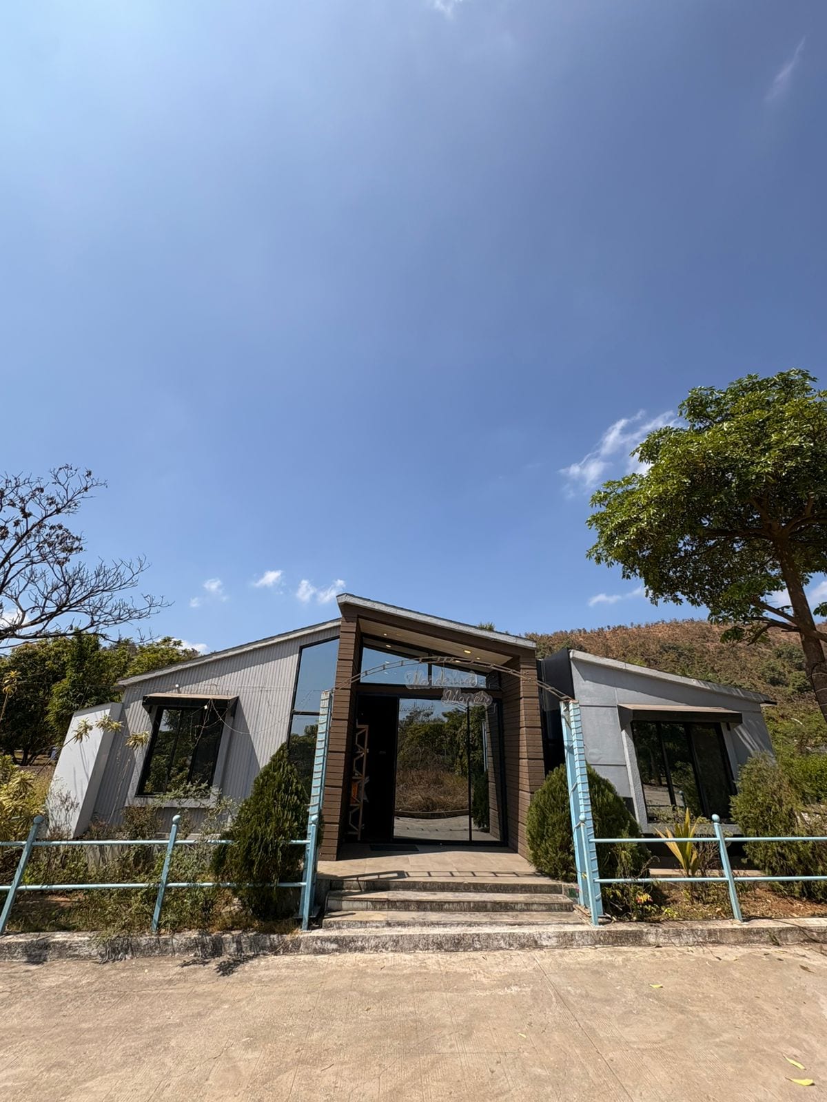 Bungalow de diseño de estudio de autoservicio de la arquitecta Hitisha Mehta, con estilo contemporáneo y comodidades situadas en medio de un huerto frutal en Dahanu. Decorado con buen gusto, con comodidades modernas y cocina americana. Llamado cariñosamente "Neelkanth".