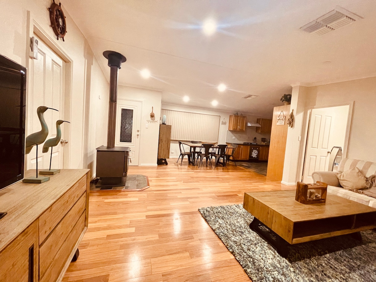 This stylish place to stay is perfect for family or group trips featuring 2 bedroom, queen sized bed in the master bedroom and two king single beds with a trundle for an extra guest, combined bath & shower, a spacious lounge room with comfy leather couches for you to enjoy movie nights, full kitchen facilities for you to cook yummy dinners. Enjoy your morning coffee on the covered patio, big yard for your pet, there is ducted air conditioning throughout the whole house & gas heating if need it.