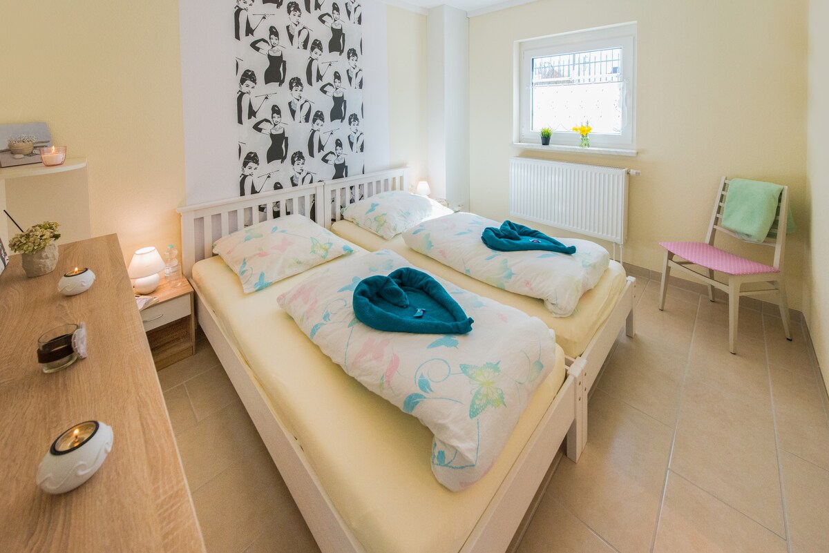 Usted vive en un apartamento pequeño, sencillo pero acogedor (25 metros cuadrados) con una cama doble (140x200cm) y cuarto de baño con ducha en la ciudad de Boppard. Tiene una entrada independiente y se encuentra en el sótano de nuestra casa. Se proporciona acceso Wi-Fi gratuito. En el salón-dormitorio para 1-2 personas no hay cocina, pero existe la posibilidad de preparar el desayuno. Hay una cafetera de cápsulas, un hervidor de agua y una pequeña nevera disponibles. Hay platos y vasos disponibles.
