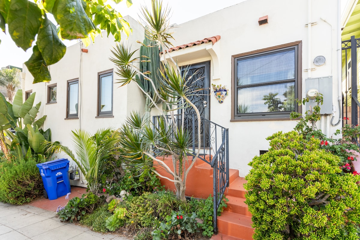 Unwind in a cozy colorful casita in this light-filled 1920s Spanish bungalow decorated with Mexican folklorico. Take a walk into Little Italy for dinner. Or to a show at the Old Globe.What’s best, is how close you are to so much, all without needing a car. A very small single car garage is provided, think compact car. Street parking is free but challenging at times. The house is located directly below the incoming flight path. You are encouraged to read the reviews regarding this.Ideal for four.