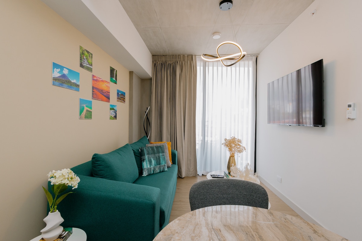 ¡Esta es la vida que te mereces! Diseñado para estancias largas, trabajo a distancia, turismo médico, base de excursiones de un día y nómadas digitales. ¡Consulta nuestras más de 200 evaluaciones de 5* como anfitrión! Ubicado en el ático de la Torre Cosmopolitan, el edificio inteligente más nuevo en la mejor y más segura ubicación de San José. Cerca de aeropuertos, hospitales, embajadas, parques para correr, restaurantes, tiendas, supermercados, farmacias y centros comerciales. El aire acondicionado, los escritorios y los televisores inteligentes 4k son ideales para 3 áreas independientes de trabajo o estudio.