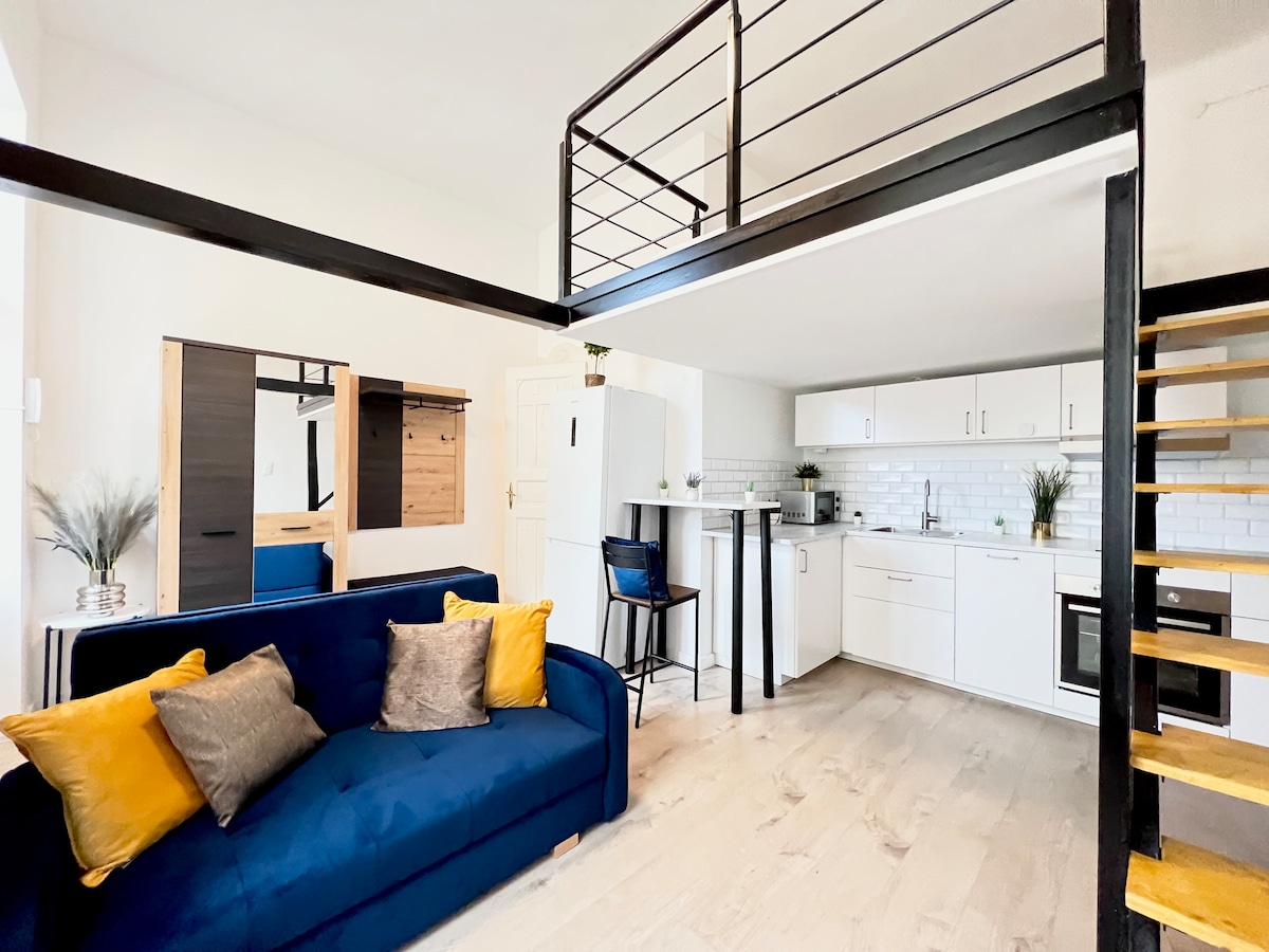 Our unique and spacious LOFT flat is located in an old and beautiful mill building whithin walking distance from the Danube river. The flat is fully equiped (55" LG Smart Tv, washing machine, kitchen, etc.) and can accomodate 3 persons comfortably, even for a longer period. The building is located in one of the best areas of Budapest.