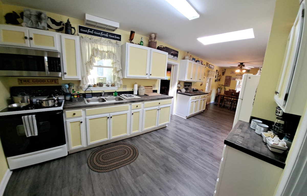 Te damos la bienvenida a Hidden Valley. Al reservar tu estancia, tendrás acceso exclusivo a nuestra casa de huéspedes de tres dormitorios/dos baños. Estarás rodeado de vistas montañosas y pastos. Acurrúcate en el porche envolvente, asa malvaviscos en la fogata y visita a los caballos, el ganado y nuestra tortuga Sulcata. Esta es una granja en funcionamiento y con frecuencia verás y escucharás maquinaria agrícola (tractores/vehículos todoterreno/etc.), ganado (ganado/caballos/un burro/4 perros/un gato) y vida silvestre (coyotes/pavos/ciervos).
