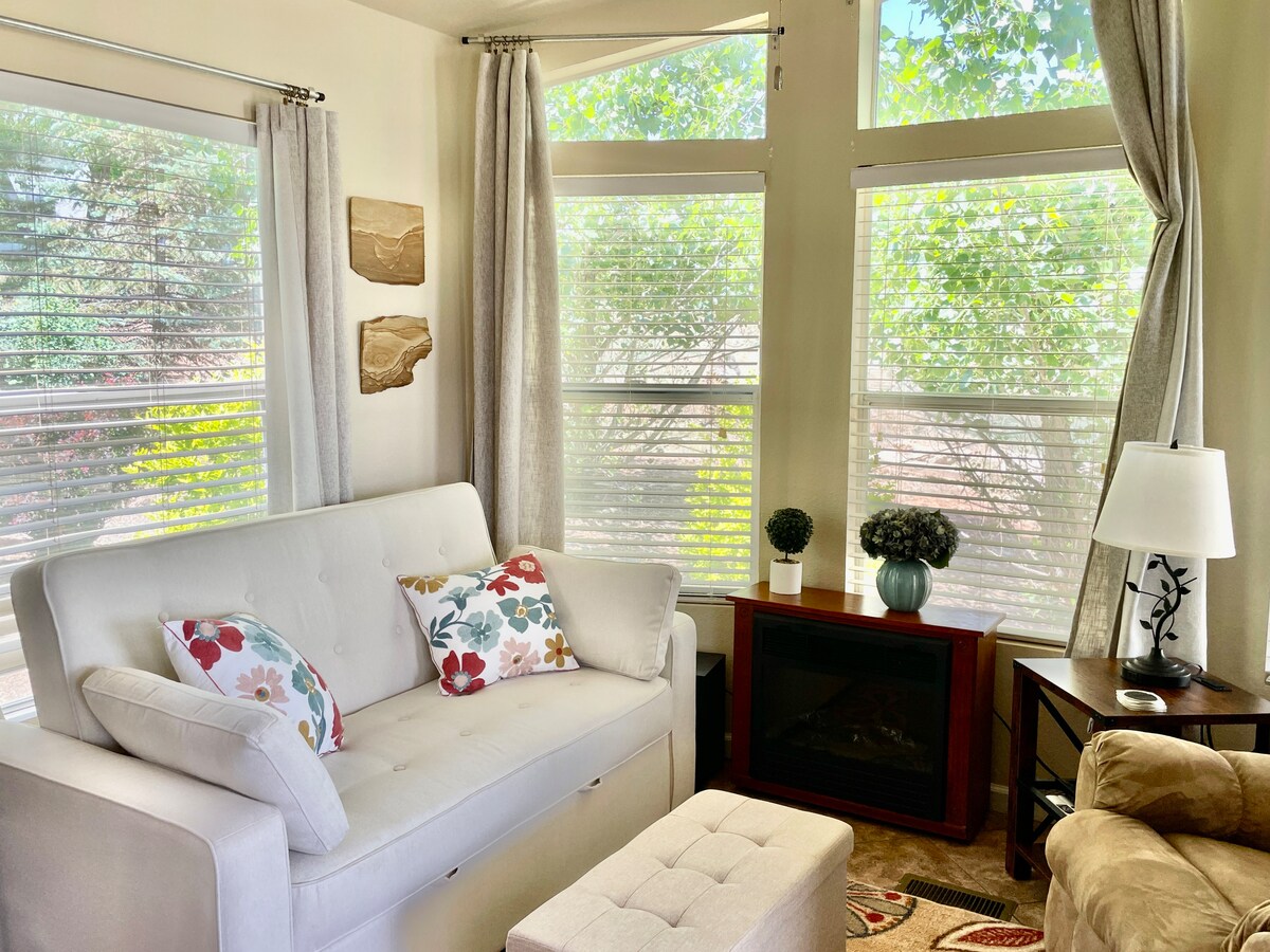 ¡Ven a respirar aire fresco!Ubicada en 3 acres, esta casa de 3 dormitorios y 1 baño está rodeada principalmente de campos de granja abiertos. Los animales que se pueden escuchar de los campos de cultivo incluyen vacas, cabras, pollos, patos y caballos. Hay suficiente estacionamiento gratuito para todos,incluidas las caravanas. Entrada individual con teclado para una experiencia sin interacción, lavadora y secadora, WiFi, televisión inteligente de 50pulgadas, sofá seccional y colchones cómodos nuevos, así como una cocina totalmente equipada, que incluye una barra de café/té.