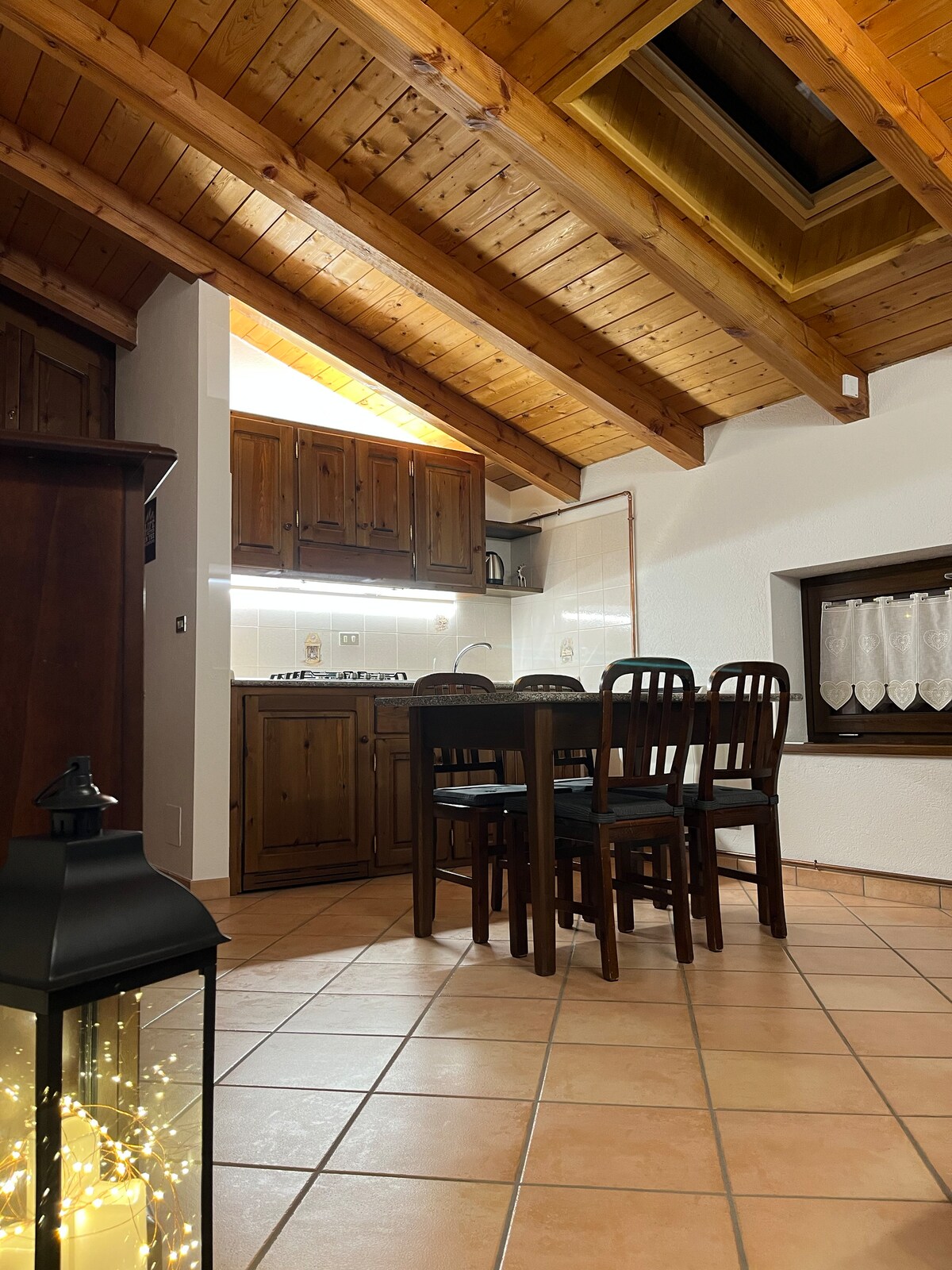 Alps Mountains. Italy. Aosta Valley. A cabin in a small village at 1600 meters,in the peace of meadows, grazing cows and mountains. Snow (usually) in the winter. A place of the heart, lovingly restored preserving the ancient beams of the roof. A wonderful view from the large windows and a special tranquility for those in search of peace, warmth and relaxation. The furniture is very nice: wood above all, but also more lively colors, and modern comforts. Quiet excursions, both on snowshoes or ski.