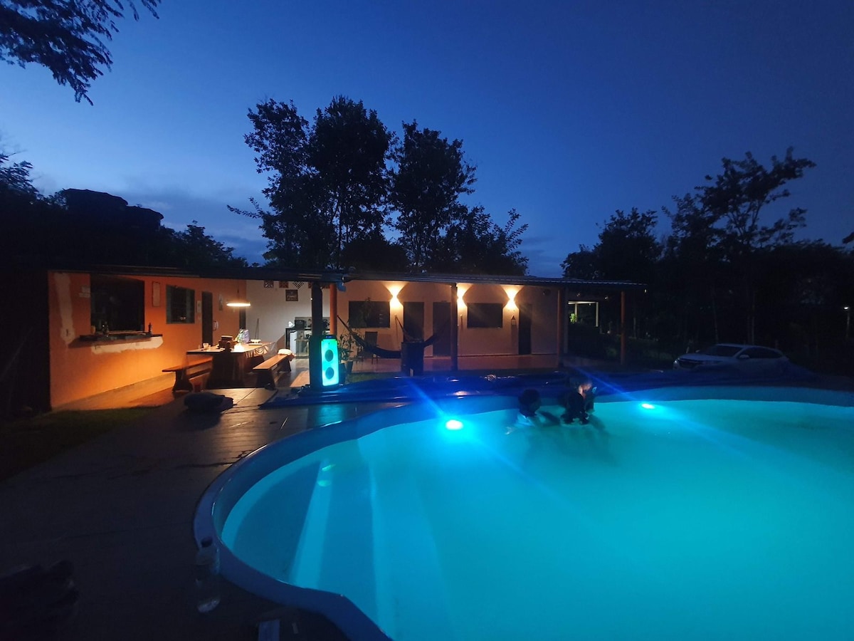 Una granja cerca de Gyn. ¡Desconéctate del estrés de la ciudad permitiendo días memorables en un lugar sencillo, pero lleno de cosas que te encantarán! Disfruta de una piscina climatizada para adultos con tratamiento de ozono. El condominio tiene un río y un lugar para bañarse, un parque infantil. Tenemos 3 dormitorios, el primero con baño privado y cama doble, el segundo con 1 cama doble y 1 cama individual, y el tercero con cama doble y colchón doble separado. Puedes traer a más personas al campamento, informa para la facturación.