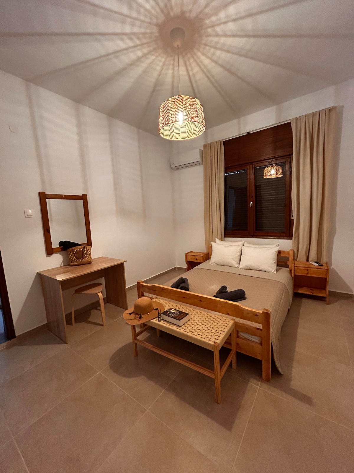 Cómodo apartamento de tres dormitorios en Nea Skioni, ideal para parejas y familias. En una ubicación tranquila, a 5 minutos a pie de la playa más cercana y cerca de tabernas. Cuenta con un cómodo balcón para relajarse, estacionamiento gratuito y elegante decoración con toques tradicionales. Combina relajación, comodidad y auténtica hospitalidad. Acogedora habitación triple en Nea Skioni, ideal para parejas y familias. Zona tranquila, a 5 minutos a pie de la playa. Balcón, estacionamiento gratuito, decoración tradicional, perfecto para relajarse.