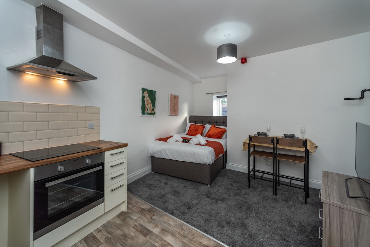 Se encuentra en el corazón del puerto deportivo de Swansea, a 30 segundos a pie de la playa. Un pequeño agujero de perno perfecto con un dormitorio de lujo baño extra grande y lavadero cocina. Ten en cuenta que no hay sala de estar. Este piso de un dormitorio ocupa la planta baja de una gran casa de la ciudad. Entrada trasera con código de seguridad para su comodidad. Esto será ideal para una escapada rápida o para alguien que no desee pasar largos períodos en las instalaciones. Aunque todo está provisto de TV , ropa de cama de lujo con nueva cama doble y ropa de cama. Los tés, el café y la leche se proporcionarán con jabones de manos de lujo y crema de manos. También se proporciona un aparcamiento gratuito. Prometemos que será el más limpio y conveniente para los bares, restaurantes locales, playa y el centro de la ciudad, que está a 10 minutos a pie. Perfecto para una noche barata para las parejas ocupadas que buscan dormir cómodamente.